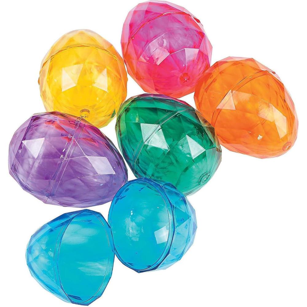 Fun Express Diamond Plastic Easter Eggs – Sparkling 12 Easter Eggs, Elevate your Easter Egg Hunt Experience with Plastic Diamond Egg – Roomy Delights, Big Surprises Await & Stress-Free Easter Fun