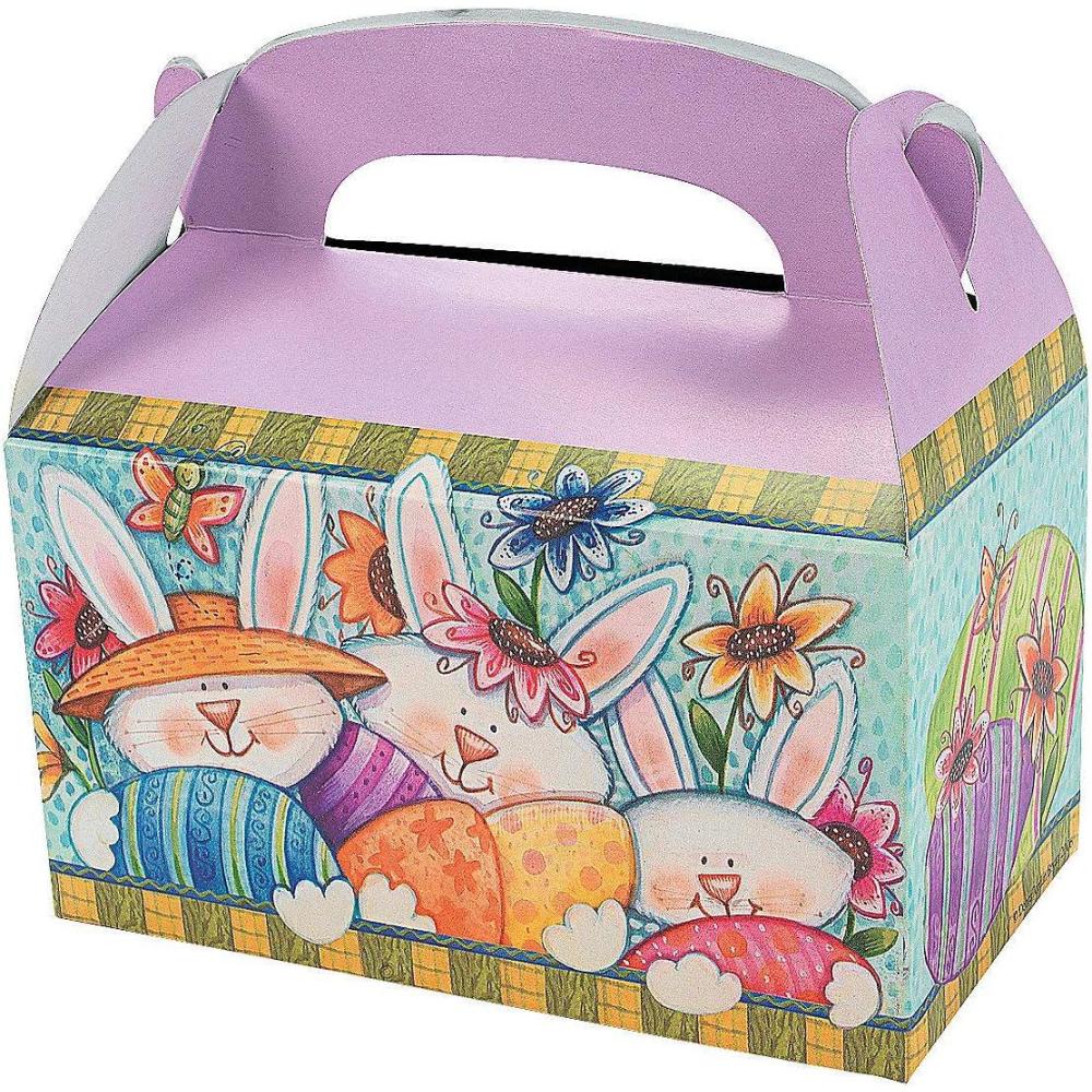 Easter Treat Boxes. Fill these cardboard boxes with toys and treats! Each design features rabbits, carrots and eggs for Easter. 3 1/2H x 6 1/2W. Simple assembly required. Exclusive. Details: Easter, Paper, Eggs, Bunnies