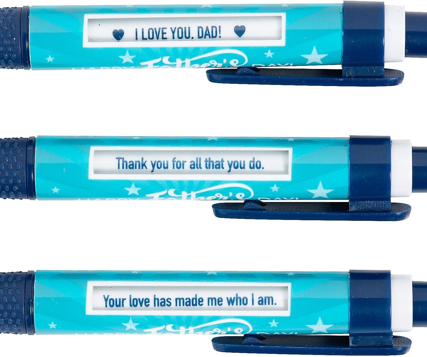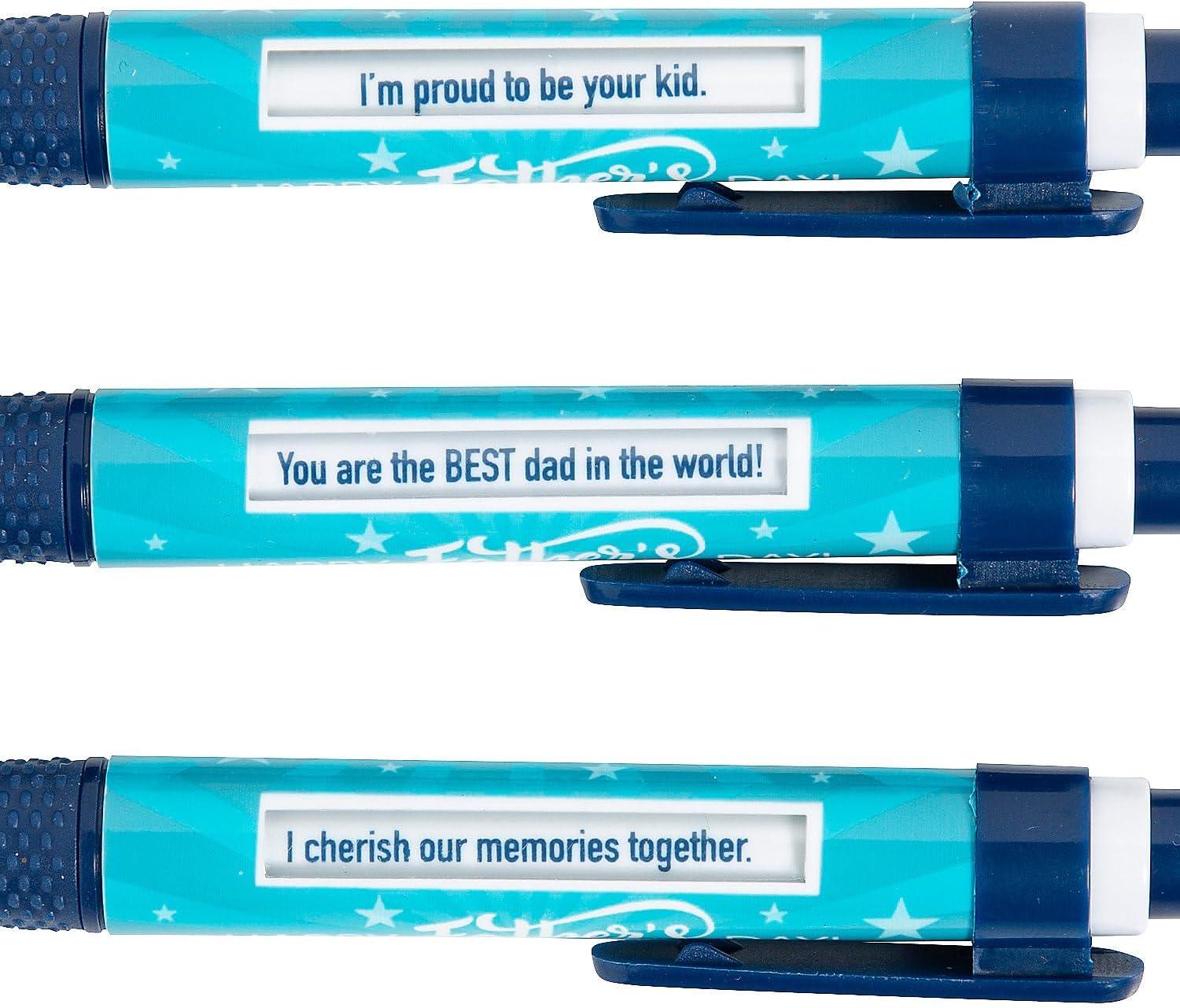 Make this father’s day unforgettable with these thoughtful Father’s Day message pens! Each blue pen features a sleek star design and the heartwarming sentiment “happy father’s day,” making it a meaningful gift for any dad. Perfect for father’s day giveaways or as gifts from kids, these pens are more than just writing tools they’re a heartfelt reminder of appreciation. With a built-in clicker that displays 6 rotating messages, dads will feel special every time they use it. Designed with black ink and durable plastic, these 5.5″ pens are functional, stylish, and full of thoughtful charm. Give dads a gift that will bring a smile to their faces with every word they write!
