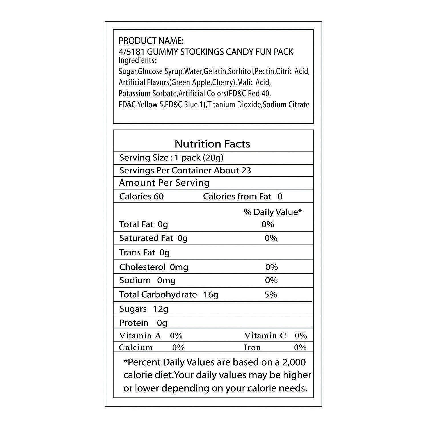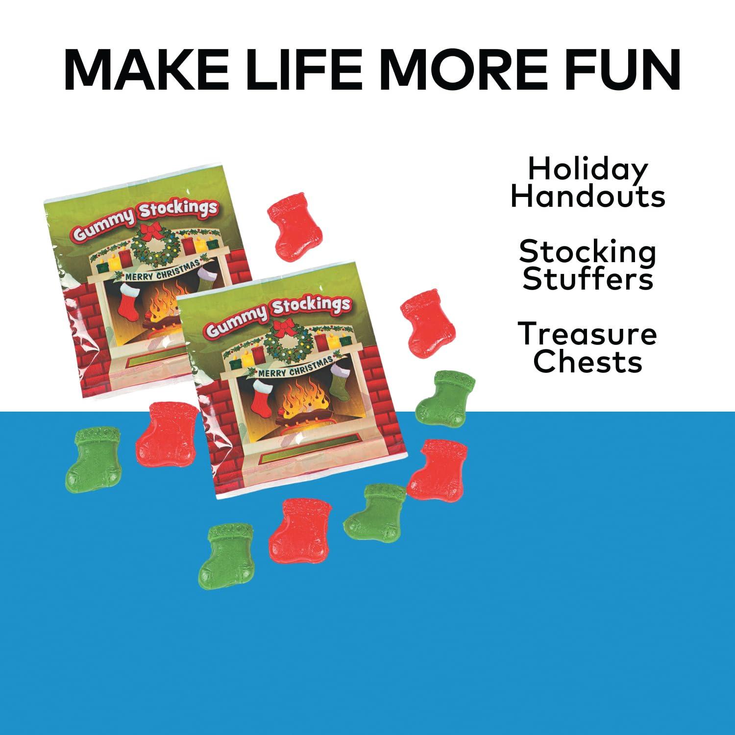 “Make your holiday season extra special with Fun Express Gummy Candy – the perfect christmas stocking stuffers that bring joy to kids and adults alike. This generous bulk pack includes 18 individually wrapped candy portions, each containing 6 delicious gummy pieces shaped like festive stockings. With a total weight of 1 pound, you'll have plenty of these chewy candy treats to share at christmas parties, use as party favors, or distribute during holiday parades. Our gummies candy features two crowd-pleasing flavors: tangy green apple and sweet cherry. Each piece delivers the perfect balance of fruity taste and satisfying chewiness that makes gummy candy a timeless favorite. The soft candy texture appeals to all ages, making these an excellent choice for candy for kids as well as adult party favors. The individually wrapped candy format offers unmatched convenience for various occasions. Use them as candy for goodie bags at birthday parties, christmas party favors for office celebrations, or bulk snacks individually wrapped for on-the-go enjoyment. The pre-portioned packs ensure freshness and make distribution effortless, whether you're filling stockings or creating party packs. These fruit gummies stand out as premium party candy that's both fun and practical. The festive stocking shape adds a playful touch to your christmas candy bulk collection, while the fat-free formula lets everyone indulge without guilt. Perfect for parade candy bulk needs, classroom treats, or simply stocking your pantry with gummy snacks for everyday enjoyment. Whether you're planning stocking stuffers for kids, organizing party favor candy for a celebration, or looking for bulk gummy candy to share with friends and family, this gummy mix delivers on all fronts. The combination of great taste, convenient packaging, and festive design makes these fruity candy treats a must-have for your holiday season and beyond.”