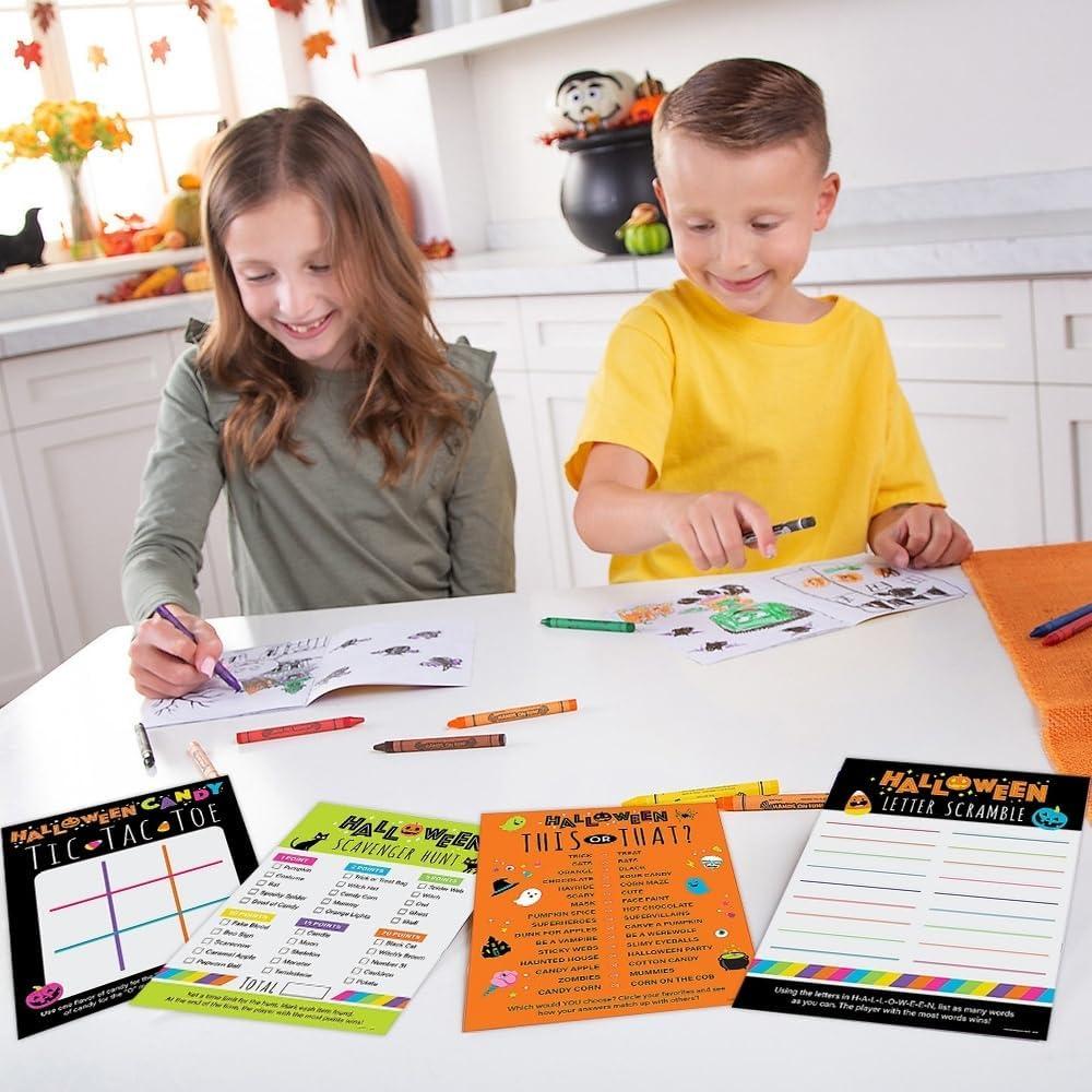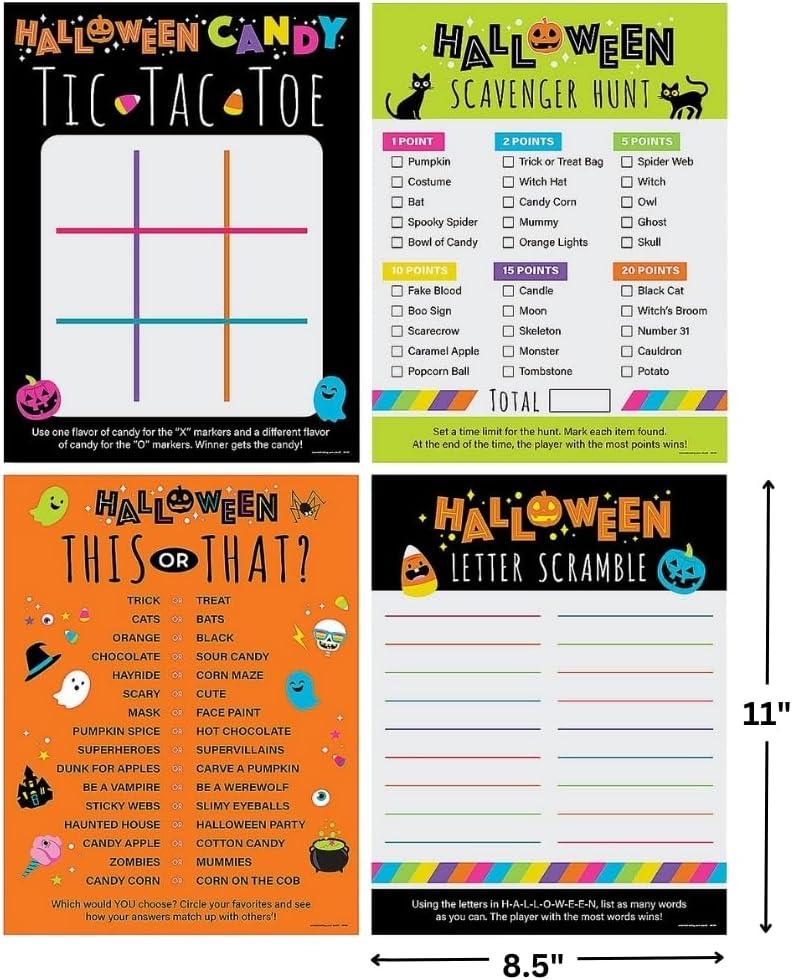 Get ready for a frightfully fun time with our spooky Halloween family game kit! This bulk kit includes 24 sheets, each 8.5″ x 11″, featuring a variety of spooky-themed games such as tic-tac-toe, scavenger hunts, this-or-that, and letter scramble activities. Perfect for family gatherings, halloween parties, and themed events, these game sheets are designed to keep everyone entertained and add a playful touch to your halloween celebrations. With enough sheets for all your guests, this kit is a great addition to classroom activities and at-home Halloween fun.