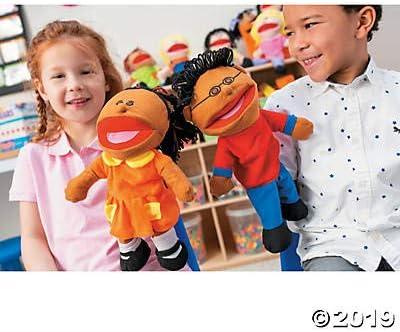 Complete puppet set includes 8 diverse multicultural hand puppets perfect for speech therapy toys and occupational therapy activities – Each 14-inch plush puppet features working mouths, embroidered faces & durable sewn-on clothing