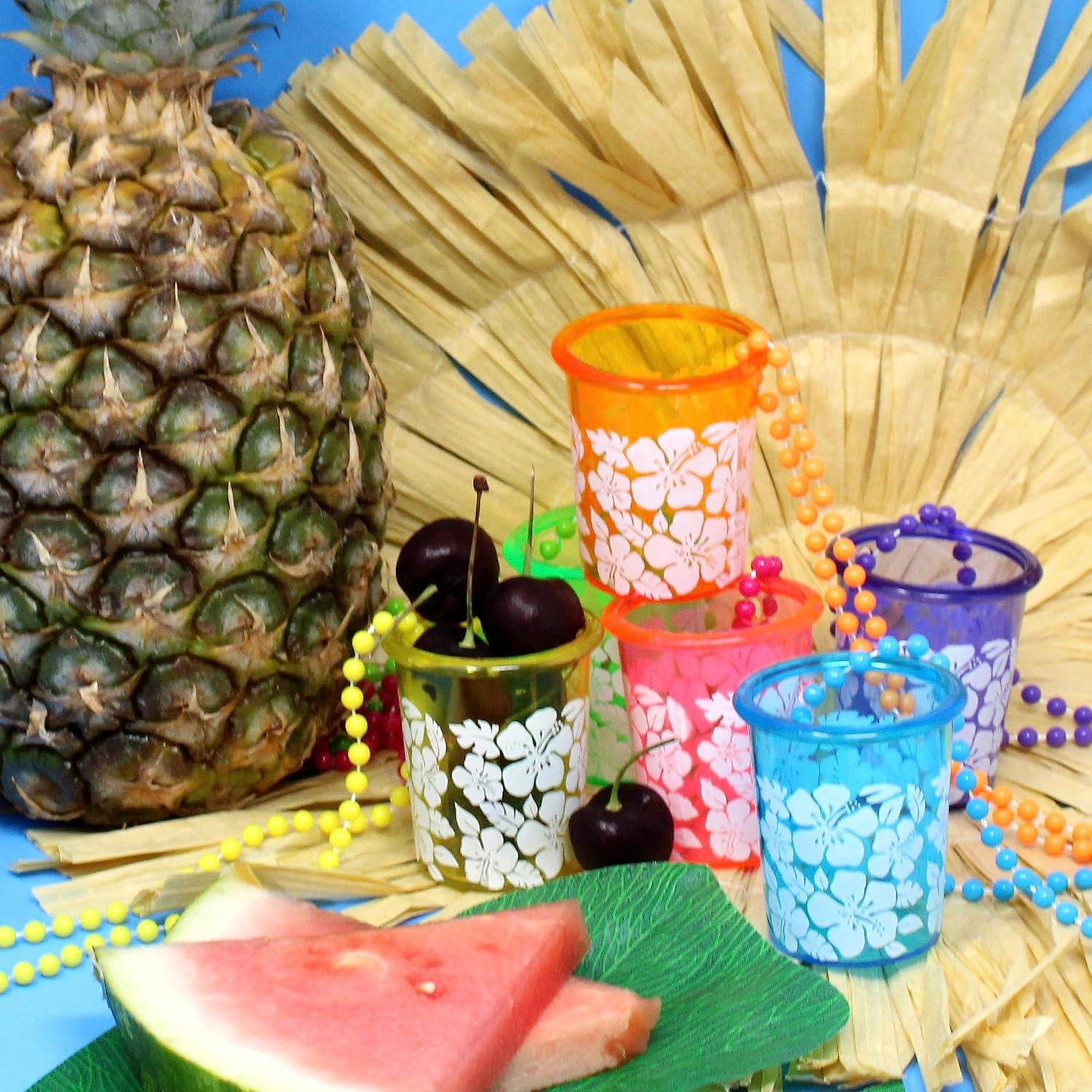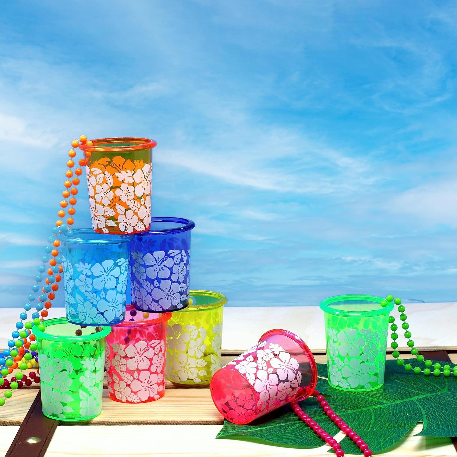 Fun Express Hawaiian Luau Shot Glass Necklaces Bulk 12 Pk Hawaiian Hibiscus Luau Party Favors Hawaiian Party Favors Hula Aloha Summer Beach Tropical Party Favors for Hawaiian Luau Birthday (Plastic)
