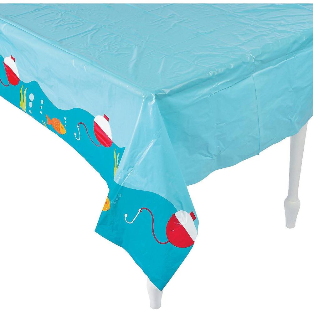 Fun Express Little Fisherman Table Cloth Cover (9 feet Long) Fishing and Birthday Party Supplies
