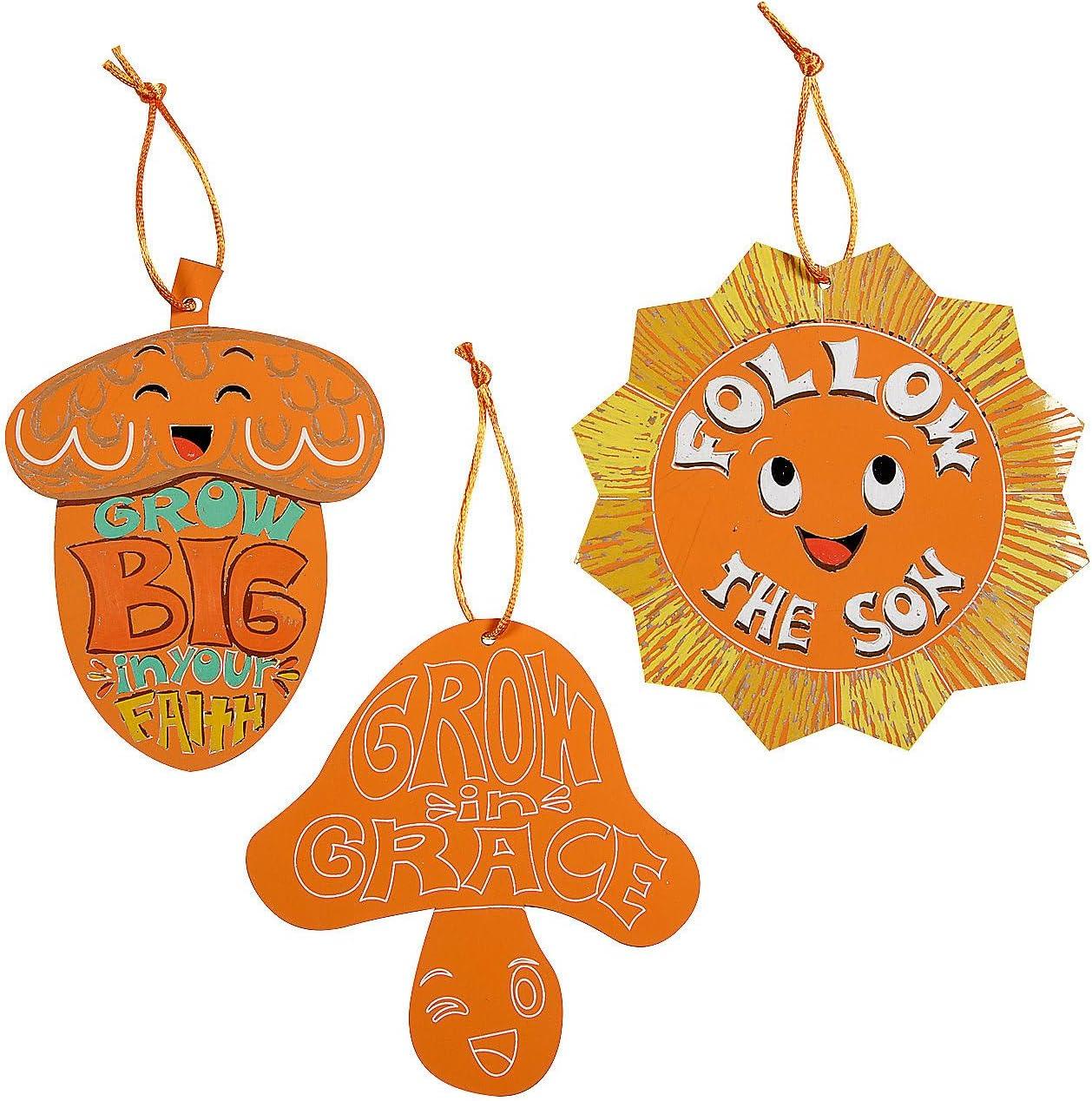 Fun Express Magic Color Scratch Religious Fall Sunflower, Acorn & Mushroom Ornaments – 24 Piece