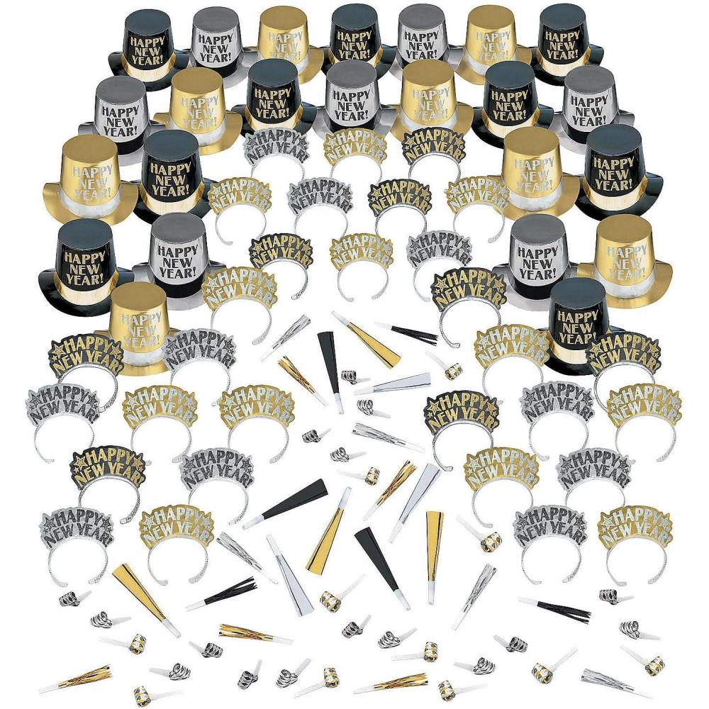Fun Express New Years Eve Party Supplies 2026 Kit for 100 – Premium Bulk Party Favors with Gold & Silver Hats, Tiaras, Noisemakers & Decorations | Complete NYE Celebration Set for Large Groups