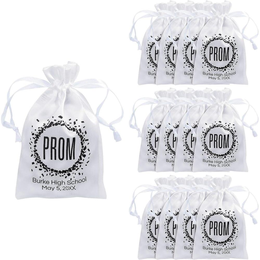 Fun Express Personalized Mini Prom Drawstring Favor Bags – 24 Pieces