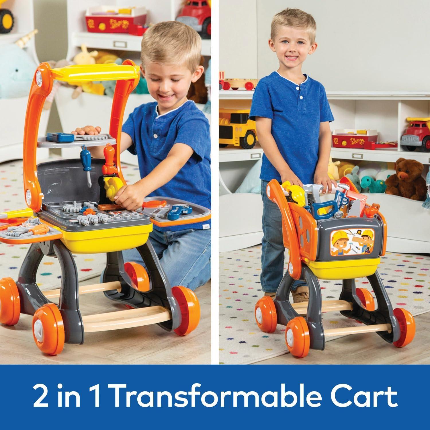 Fun Express Plastic Tool Cart with Play Pieces – Educational Tool Set for Kids, Kids Plastic Tools for Kids with Play Accessories – Educational Pretend Play for Children, Portable Educational Toy