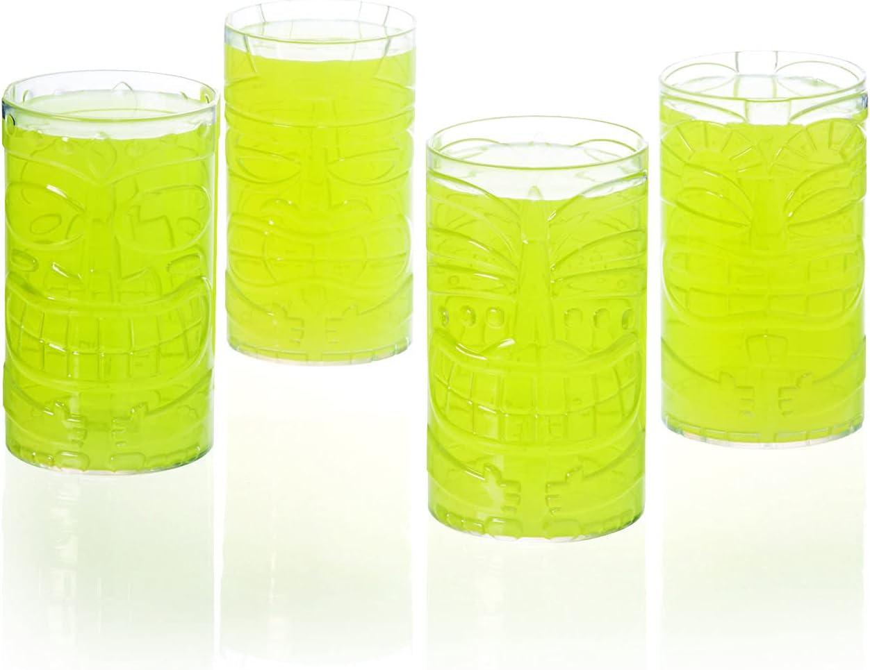 Fun Express Set of 8 Clear Tiki Plastic Mug Cups – each holds 14 oz – Luau Party Supplies