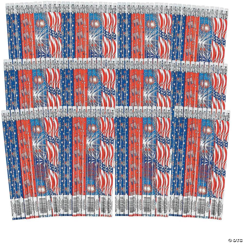 Fun Express USA Patriotic Pencils – Bulk set of 144 – Fourth of July party favors and giveaways