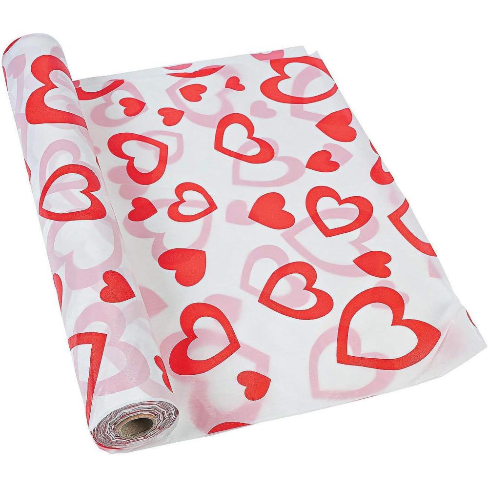 Fun Express Valentines Day Tablecloth Roll with Hearts (100 feet Long) Disposable Plastic and Big Enough to Cover Multiple Tables