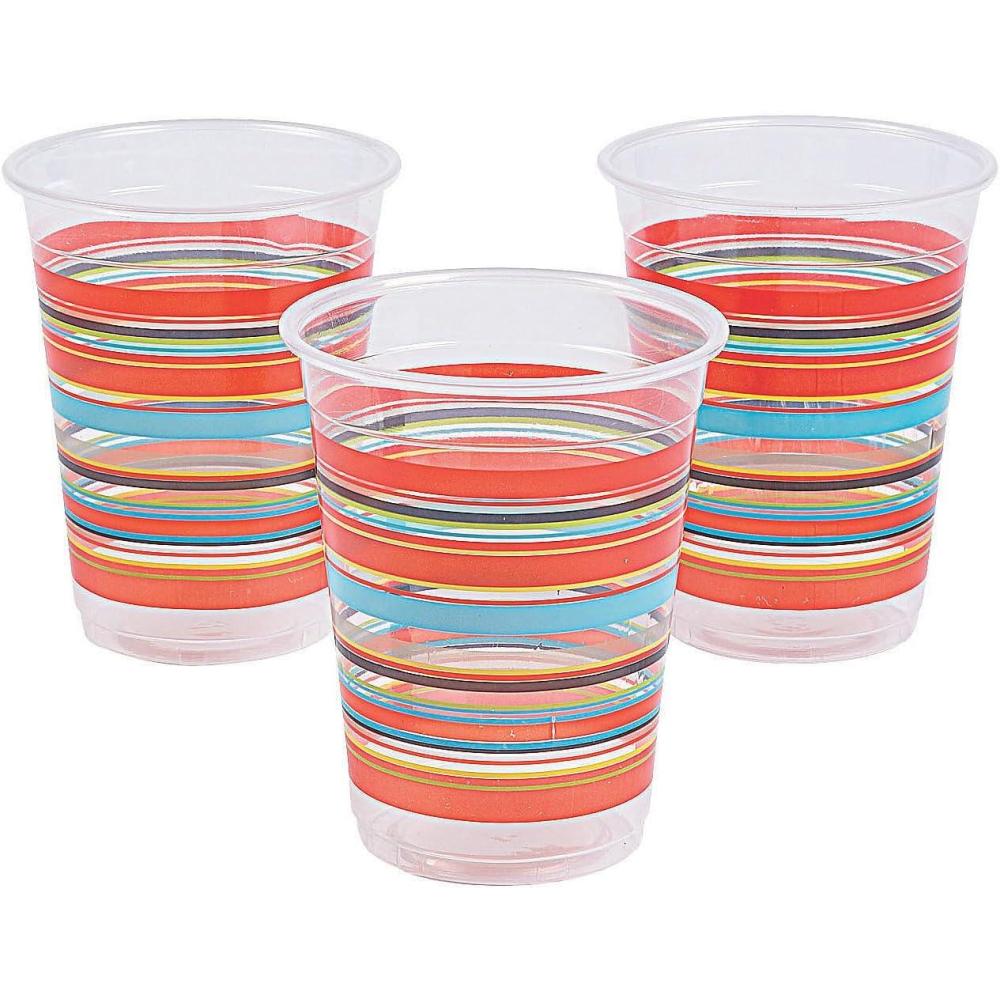Printed with bold, festive stripes, these party cups resemble a serape pattern and are perfect for a Cinco de Mayo party or a fiesta event!