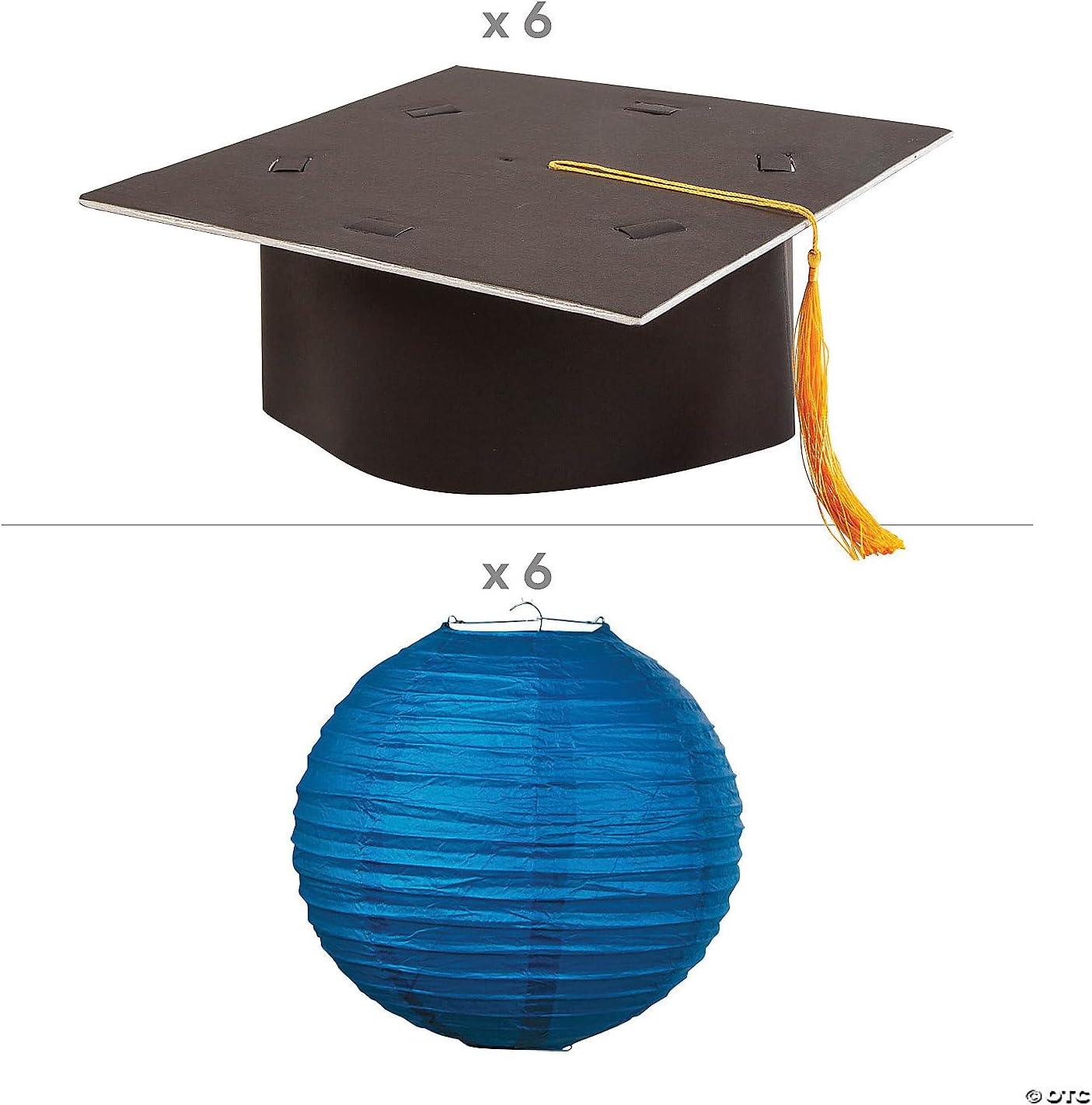 Hanging Paper Lantern with Graduation Cap Decorating Kit – 12 Pieces – Great for Graduation Celebration Parties (Blue)(Blue)