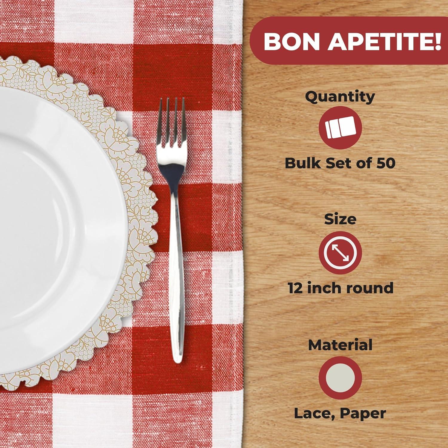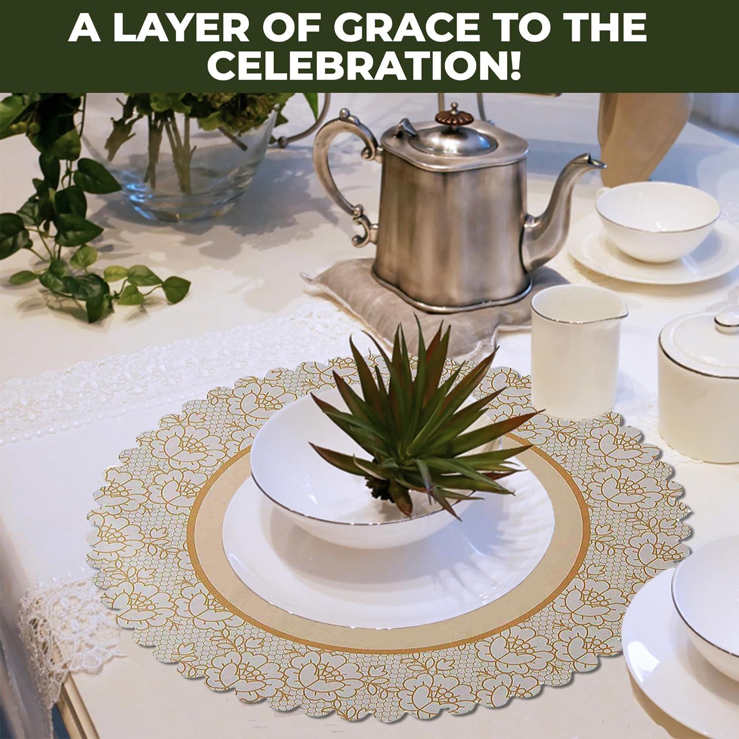 Immerse your wedding in the seamless beauty of disposable chic, a transformative touch that elevates your aesthetic instantly. Crafted for the discerning couple seeking both elegance and practicality, these lace doilies for tables redefine wedding decor. Picture effortless table settings that radiate sophistication, each detail meticulously designed for a stress-free planning experience. The ease of cleanup becomes an art form, where style meets practicality in perfect harmony. As you navigate the intricacies of wedding preparation, these 12 inch round placemats emerge as the unsung heroes, adding a touch of lace luxury to every table and leaving a lasting impression on your guests. Transform the ordinary into the extraordinary with a bulk set of 50, ensuring seamless coordination for larger events. Amidst the hustle of planning, let these paper lace doilies become your reliable companions, delivering not just practicality but an embodiment of refined elegance