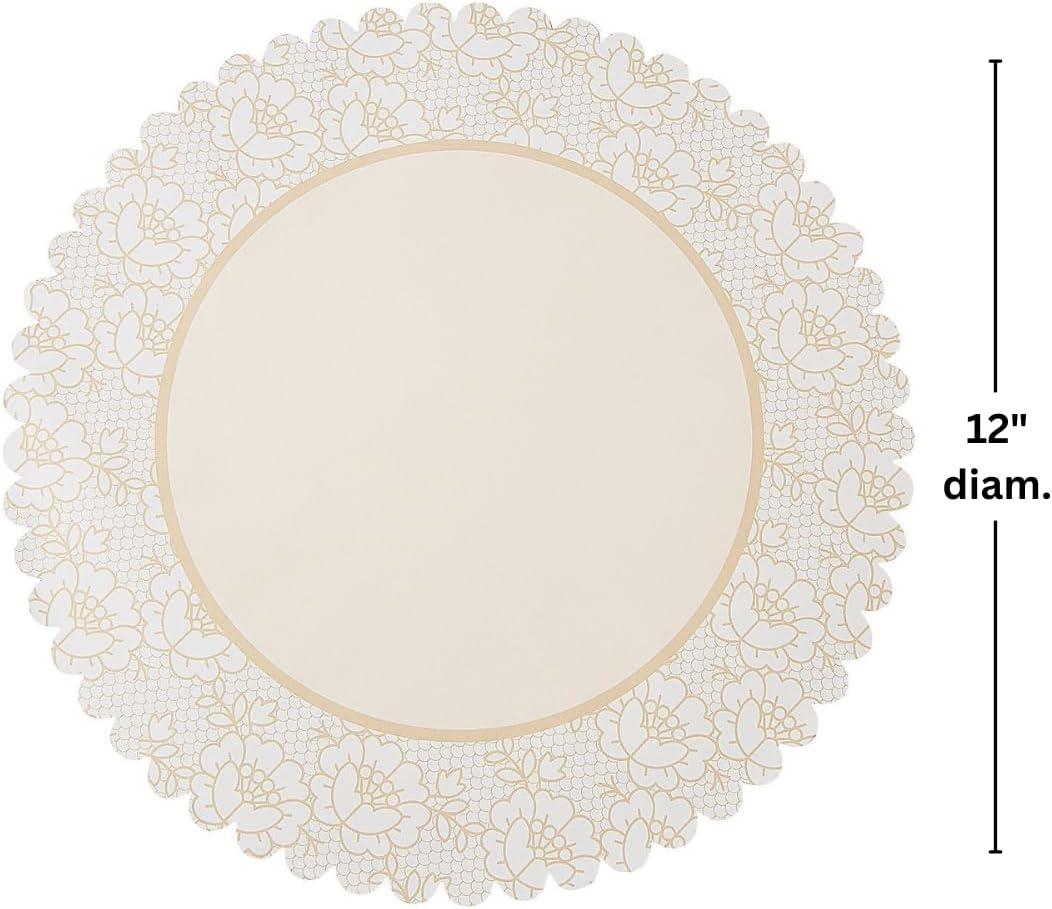 Shabby Chic Lace Placemats – Bulk Set of 50, Disposable Paper – Vintage Party Supplies, Ivory/Nude