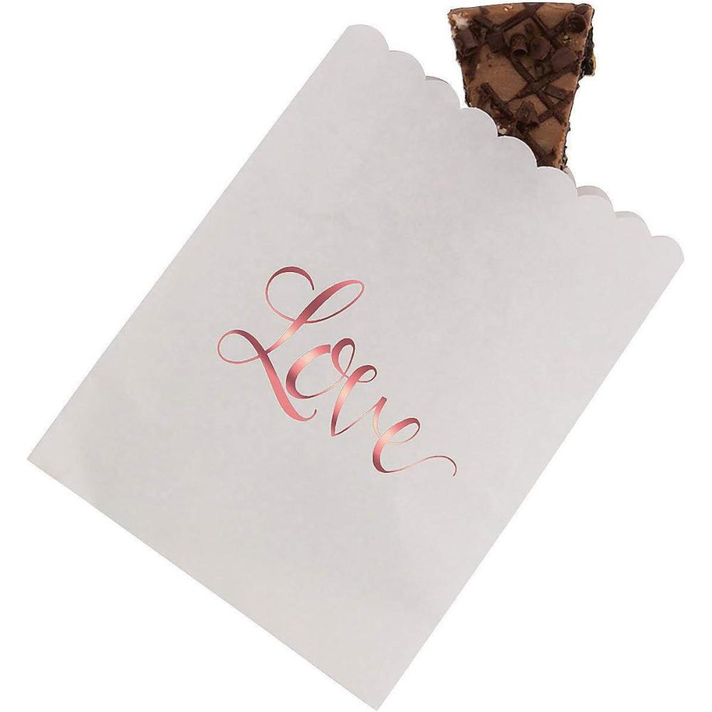 Love Rose Gold Foil Cake Bags (50pc) for Wedding – Party Supplies – Bags – Paper Treat Bags – Wedding – 50 Pieces